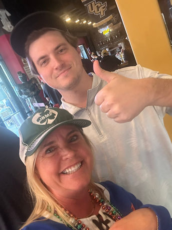 This game held special meaning for our family. Jason and Jennifer attended the University of Florida, where Jason proudly played on the UF Baseball team. Their son, Aaron, and his wife, Jenna, are alumni of the University of Central Florida. The friendly family rivalry made the day even more memorable.